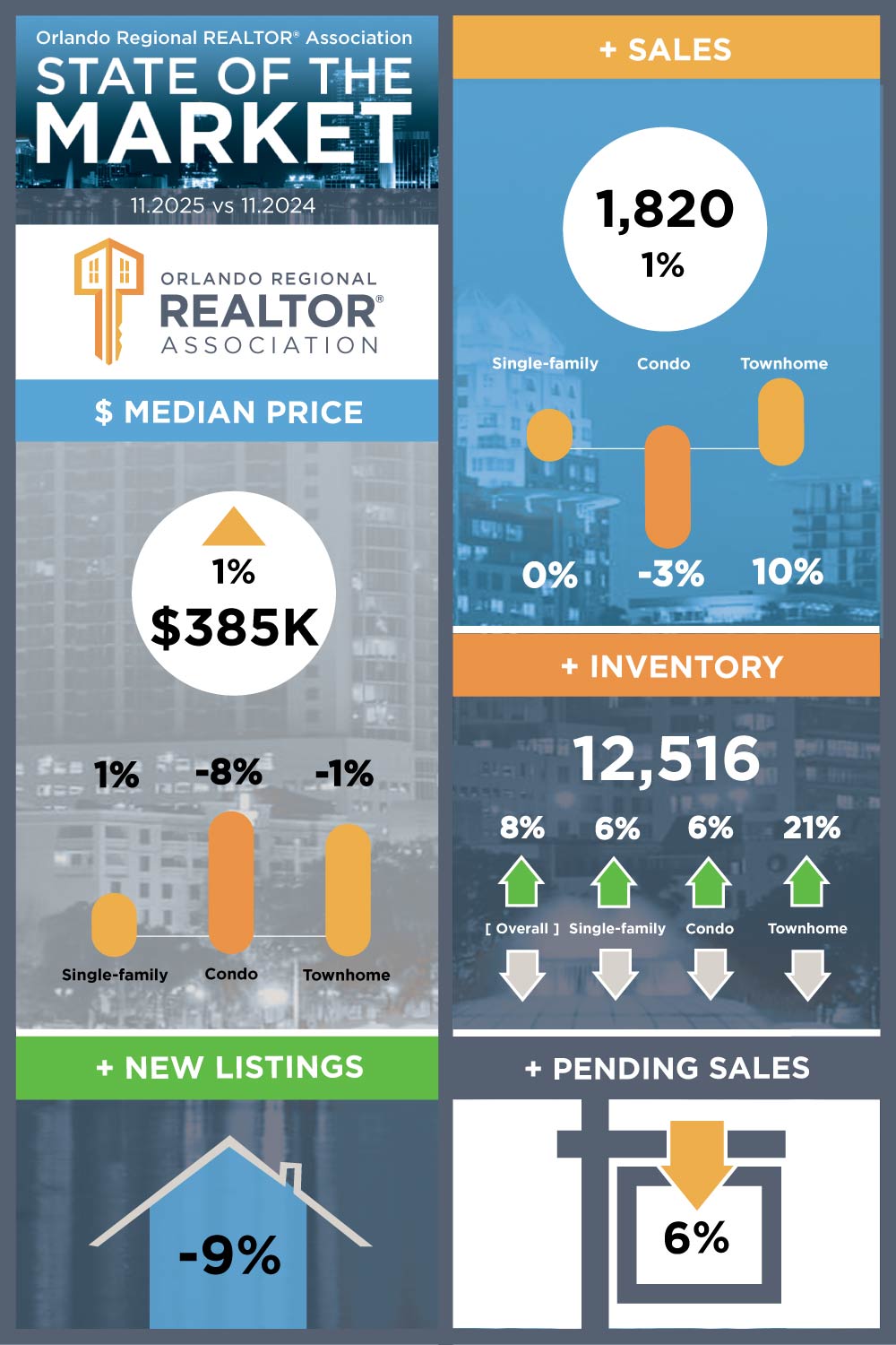 New Orlando Regional REALTOR® Association data shows a drop in sales, inventory, and new listings as Orlando continues to shift to a buyer’s market